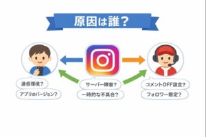- X (旧Twitter)で検索する: 「インスタ コメント」などのキーワードで検索してみてください。障害発生時は、同じ状況を嘆く投稿がリアルタイムでたくさん見つかります。
