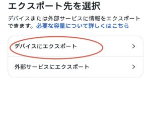- 「エクスポートを作成」から「デバイスにエクスポート」をタップ