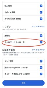 - 「情報をカスタマイズ」で「フォロワーとフォロー中」のみチェックをして「保存」をタップ
